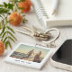 Unique and fun save the date keychains that mimick the look of a retro instant photo featuring a handwriting font with the words, "Save the Date" on one side and your names and date on the other. Your square picture has a filter over it to give it an aged look (the filter can be changed or removed by clicking the customise button). This cool and modern design is perfect for the minimalist couple having a casual wedding.