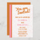 With bright pink and orange fonts and a fun watercolor background these invitations are perfect for retro, hip, and boho weddings. Find matching items in my shop.