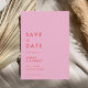 Modern minimalist wedding save the date cards featuring simple design, elegant style calligraphy in pink and red colour.