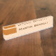 The nameplate looked exactly as pictured, I was very happy with this product! It also arrived promptly after placing my order! I would definitely recommend this product! The printing turned out exactly as I designed it, very pleased!