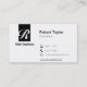 Modern, minimalist, sleek and chic business card in classic and timeless black and white with touches of grey. Personalise with the initial of the business and indicate the business details alongside the mobile, phone and email icons. Professional business card for anyone in consultancy, finance, law, attorney services.