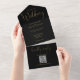 Modern Minimalist QR Code Black And Gold Wedding All In One Invitation