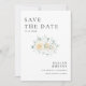 A simple and modern Save the Date card featuring elegant white roses and soft greenery. The minimalist design adds a touch of modern and natural beauty. Perfect for couples who love a clean, timeless wedding style.