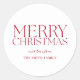 Modern Minimalist Red Merry Christmas Classic Round Sticker