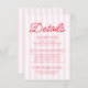 Modern Minimalist Red Pink Stripes Wedding Details Enclosure Card