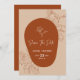 Modern boho terracotta burnt orange wedding save the date card. Minimalist elegant design in copper earthy tones. Features trendy outline botanical accents and stylish handwritten script font. You can choose printed cards and/or instant download digital template.