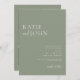Invite your friends and loved ones to a simple intimate wedding with this chic invitation featuring a simple serif font of your names and wedding details and a hint of calligraphy lettering in a sage green background.