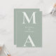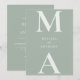 Modern Minimalist Sage Green Wedding Invitation. Features bold monogram typography and minimal graphic design. Personalise text with all the details of your special day.