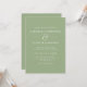 This modern minimalist wedding invitation features a stylish design. The sage green invitation features white typography for your important details such as bride and groom name, wedding date, location.