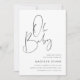 Invite guests to celebrate the mother to be with these modern and minimal baby shower invitations in classic black and white. Simple design features "oh baby" in casual handwritten script, with your event details beneath in modern soft ash black lettering. Reverse side features three custom fields for additional details; shown with a diaper raffle, book request, and registry QR code.