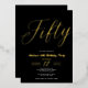 Modern Minimalist Script Black 50th Birthday Gold Foil Invitation