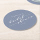 Modern Minimalist Script Blue Bridal Shower Custom Round Paper Coaster