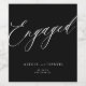 Simple engaged calligraphy script minimal design black and white engagement party personalised black favour wine bottle labels.