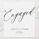 Simple engaged calligraphy script minimal design black and white engagement party personalised favour wine bottle labels.