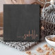 This chic note card features your name in a handwritten caramel script calligraphy "a note from" on a distressed grey black chalkboard effect background. For an edgy modern effect. The typography is stylishly placed in the lower right corner. The back of the note card is white.