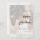 These elegant, minimalist wedding invitations feature modern script typography and clean, sans serif text as an overlay on your favourite personal photo, for a simple and stylish design you will love.