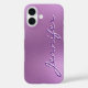 modern minimalist script purple metal personalised iPhone 16 Case