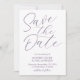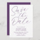 Romantic calligraphy modern minimalist script purple Save the Date announcement card.