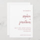 These elegant, minimalist wedding invitations feature terra rosa (rose pink) modern script typography and clean, sans serif text on a white background for a simple and stylish design you will love.