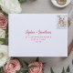 These elegant, minimalist wedding RSVP envelopes feature modern script typography and clean, sans serif text for a simple and stylish magenta red and white design you will love. Your pre-printed return address goes onto the front.