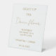 It is sturdy than I expected. Was worried about the material being flimsy but it is not. It is printed on some sort of plastic material. It should serve well at our wedding as long as wind isn’t too bad. Otherwise we will put some paper weights behind it and should be fine.