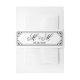 This customisable wedding invitation belly band features a black ornate frame on a white background. Just add your details to give it a custom feel and voila!