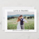 Modern Minimalist Simple Love and Thanks Wedding Bride and Groom Photo Thank You Card