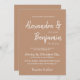 Elegant trendy typography script stylish casual wedding invitation in simple neutral beige tan and white hand lettering featuring big bride's and groom's names calligraphy. ++++++++++++++++++ You can change the colours of text and background after selecting the EDIT USING DESIGN TOOL option under PERSONALIZE THIS TEMPLATE menu. ++++++++++ The invitation is suitable for spring, summer, autumn fall, or winter wedding ceremonies and receptions.