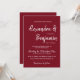 Elegant trendy typography script stylish casual wedding invitation in simple dark red wine burgundy and white hand lettering featuring big bride's and groom's names calligraphy. ++++++++++++++++++ You can change the colours of text and background after selecting the EDIT USING DESIGN TOOL option under PERSONALIZE THIS TEMPLATE menu. ++++++++++ The invitation is suitable for autumn fall or winter wedding ceremonies and receptions.