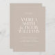 Modern wedding invitation featuring minimalist chic typography in taupe colour.