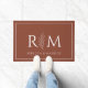 A modern minimalist couple’s monogrammed doormat, featuring an elegant botanical accent on a terracotta background, bringing warmth and style to your entryway. Designed for new or established couples who appreciate simple, elegant details, this doormat is a perfect blend of personal touch and understated sophistication. Ideal for weddings, anniversaries, housewarmings, or any home that values welcoming, modern design.