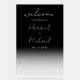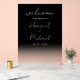 Modern minimalist wedding welcome sign featuring simple script calligraphy typography and transparent gradient.