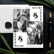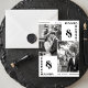Announce your special day in style with this modern minimalist two-photo save the date card. Featuring clean lines and bold typography, this design allows you to showcase two of your favourite engagement photos, highlighted by a contemporary black-and-white colour palette. With elegant placement of the couple's names and date, this card perfectly balances sophistication and simplicity. Ideal for couples seeking a timeless, sleek, and personalised save-the-date design.