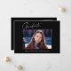 Clean, trendy, modern and elegant "3 Photo" graduation announcement cards, featuring design elements of modern text with a unique calligraphy ink script. The graduate's photos are accented with a delicate & minimalist gradient boarder. The back of the card offers personalised text spaces for information about your graduation. Black & White or easily customise the background to match your school's primary colour or any colour of your choice. Perfect for the high school, college and university grad student seniors.