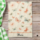 This personalised blush pink kitchen towel features a modern, minimalist watercolor butterfly pattern.