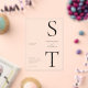 Modern Minimalist Acrylic Wedding Invitation. Features monogram typography and minimal graphic design. Personalise text with all the details of your special day.