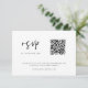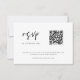 Modern minimalist, wedding QR code rsvp card. Edgy script graphic "rsvp" title and black colour backing.