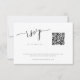 Modern minimalist, wedding QR code rsvp card. Signature calligraphy script graphic "rsvp" title.