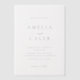 This wedding invitation features a modern minimalist design with a clean, centre-aligned layout and generous white space. It uses a mix of elegant serif and delicate script fonts to create a stylish, contemporary look. The black text on a white background keeps it simple and timeless, with no extra graphics or embellishments, allowing the typography to stand out beautifully.