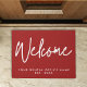 Modern Minimalist Welcome Doormat in lucky red and white with personalised business name.