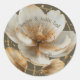 A gorgeous minimalist white and gold color wedding sticker with the name of the bride and groom, and wedding date.