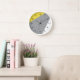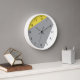 This modern round clock features a minimalist geometric design in trendy grey and yellow colours with black numerals. Great for contemporary living room or bedroom. Colours and design are fully customisable by clicking on Edit design button.