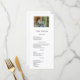 The Modern Minimalistic Elegant Photo Dinner Menu is a tasteful and sophisticated addition to any wedding reception. Its design features a crisp white background that symbolises purity and elegance, providing a clean canvas for showcasing the menu offerings.