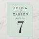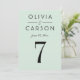 Modern and chic mint blue green wedding table number cards feature a stylish black typographic design with bold calligraphy script accents and elegant custom text that can be personalised with a monogram of the bride and groom names and the table number. Note: to order, add each individual table number (1,2,3...) to your shopping cart.