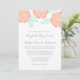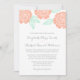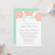 Whimsical peach roses with pastel mint green leaves decorating this modern wedding invitation.