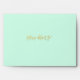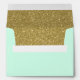 A modern mint green and faux gold glitter custom envelope. Designs are flat printed graphics - NOT ACTUAL GLITTER.