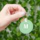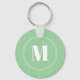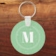 Modern mint green stripes pattern round monogram key ring