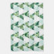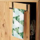 Modern kitchen towel design featuring mint green and tropical leaves triangles pattern.