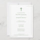 Simple and classy, this modern design is the perfect way to invite friends and family to your son's upcoming baptism, first holy communion, or christening. Features a classic white background with mint green lines, text, and cross on the front. The back features a mint green background with a white cross and lines. All green typography can be changed to fit your memorial details.