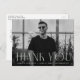 Simple graduation thank you postcard featuring the graduate's horizontal photo with "Thank You" displayed in mint green, modern art deco lettering. Personalise the front of the photo graduation thank you postcard by adding the graduate's name, school name, and graduation year. The postcard reverses to display your return address and provides space for your typed or handwritten thank you message.
